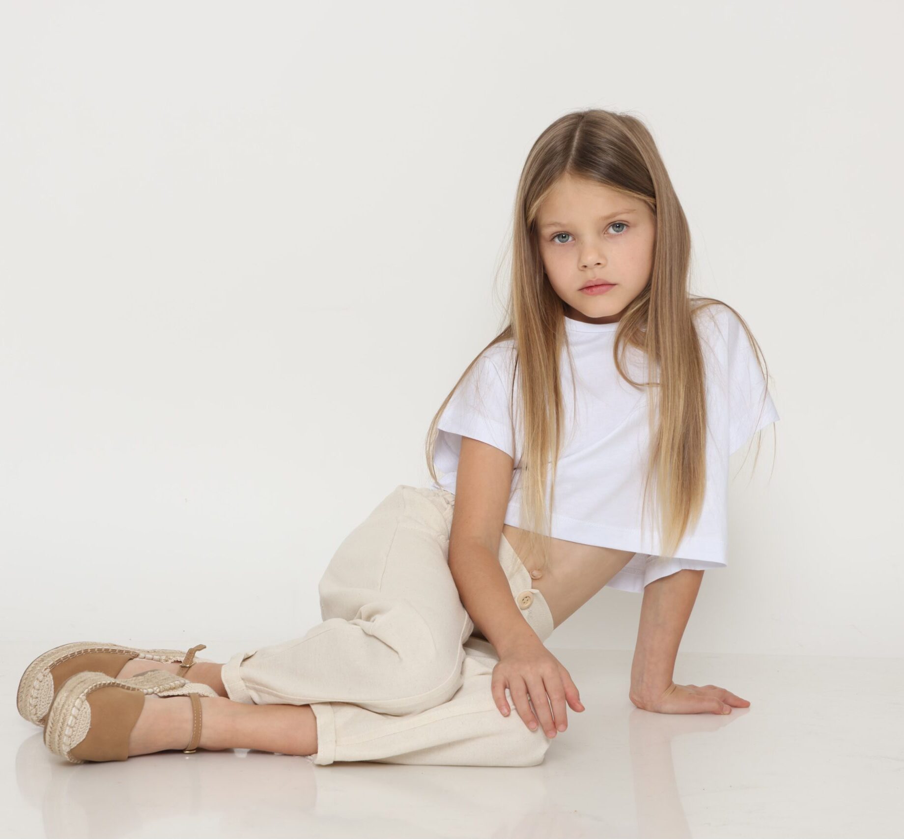 מכופתרת פשתן לבנה - כחול כהה, 7-8Y